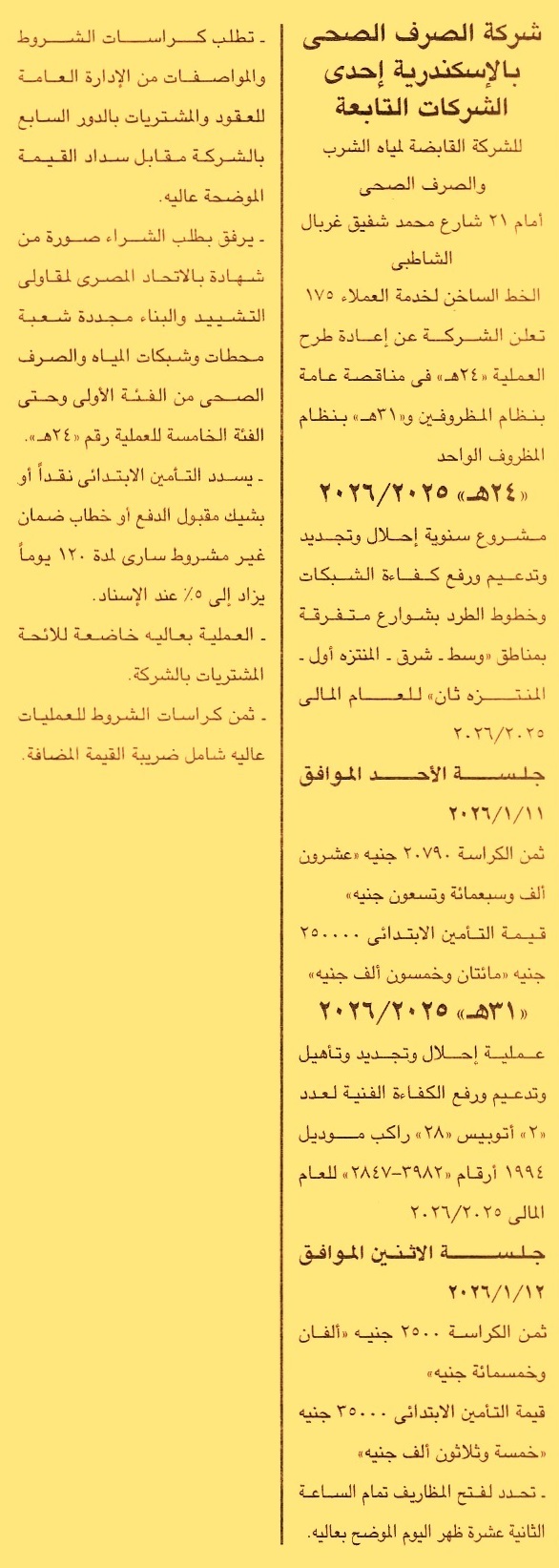 إعادة مناقصة عامة رقم 24هـ/2025/2026 لعملية