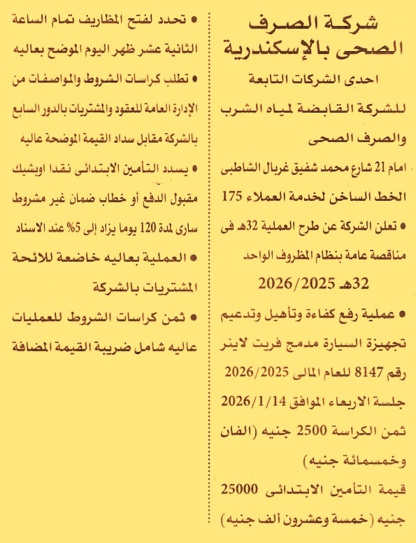 مناقصة عامة رقم 32هـ/2025/2026 لعملية