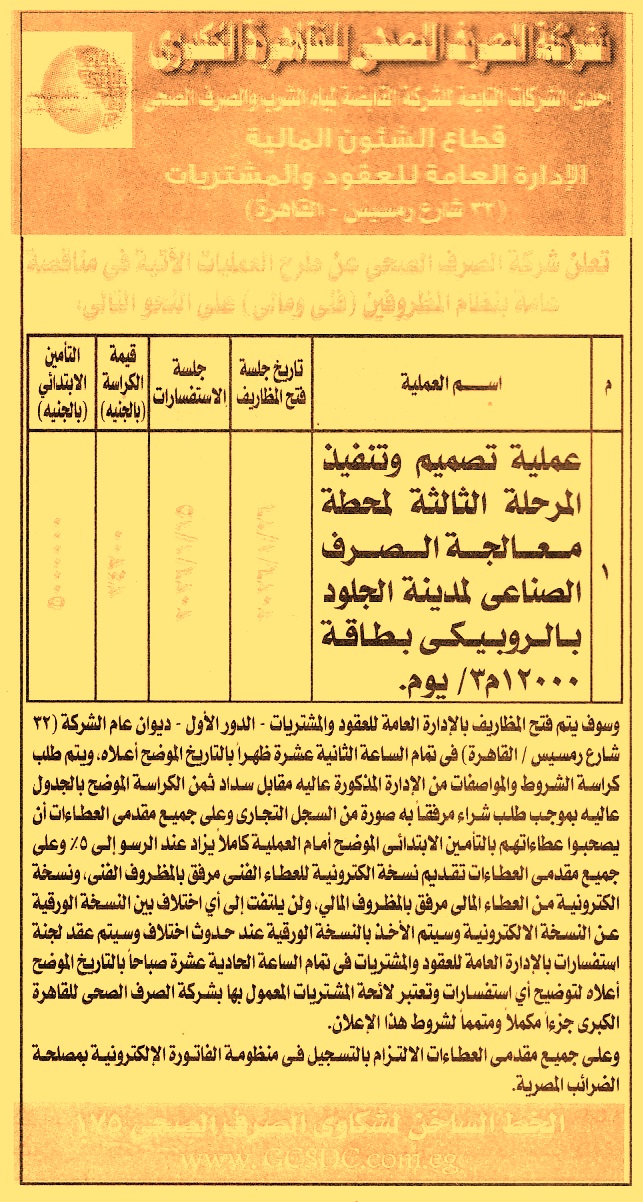 تصميم وتنفيذ المرحلة الثالثة لمحطة معالجة الصرف الصناعي لمدينة الجلود بالروبيكي بطاقة 12000م3/يوم
