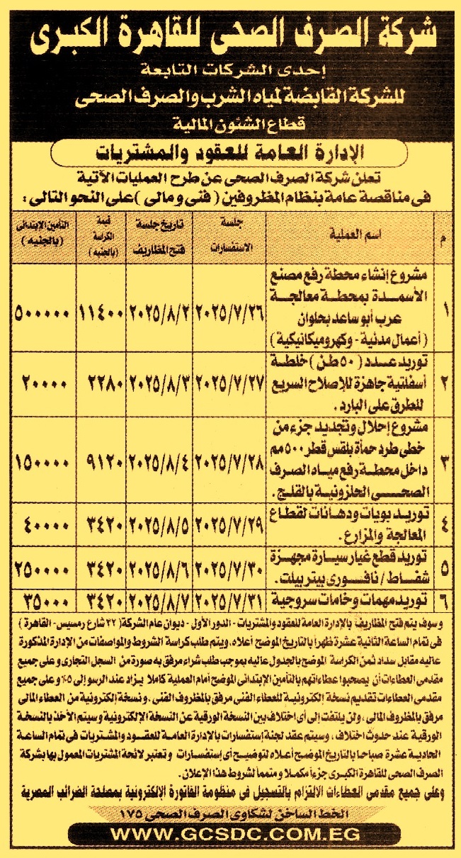 (جلسة الإستفسارات يوم 26/7/2025 الساعة 11 ص وعلى مقدم العطاءات تقديم نسخة إلكترونية من المظروف الفني والمالي ولن يلتفت إلى أي اختلاف بين النسخة الورقية عن النسخة الإلكترونية وسيتم الأخذ بالنسخة الورقية عند حدوث اختلاف)
