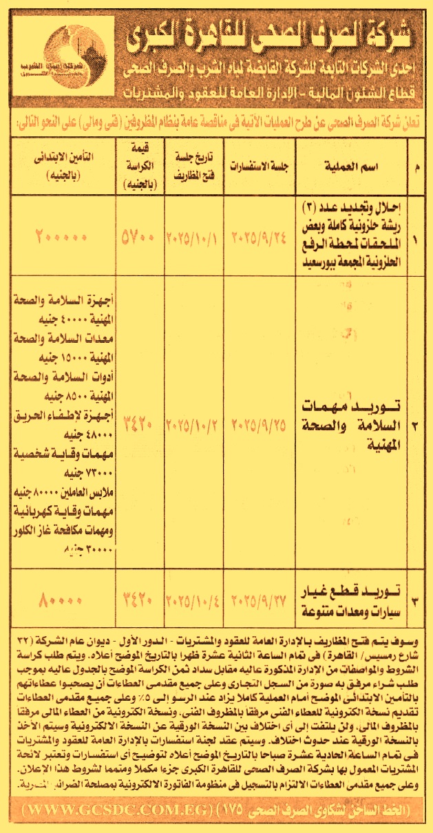 (جلسة الإستفسارات يوم 24/9/2025 الساعة 11 ص وعلى مقدم العطاءات تقديم نسخة إلكترونية من المظروف الفني والمالي ولن يلتفت إلى أي اختلاف بين النسخة الورقية عن النسخة الإلكترونية وسيتم الأخذ بالنسخة الورقية عند حدوث اختلاف)