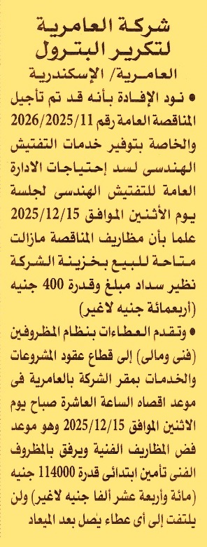 للمناقصة العامة رقم 11/2024/2025 لعملية