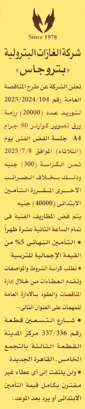 منافصة عامة رقم 104/2024/2025 لعملية