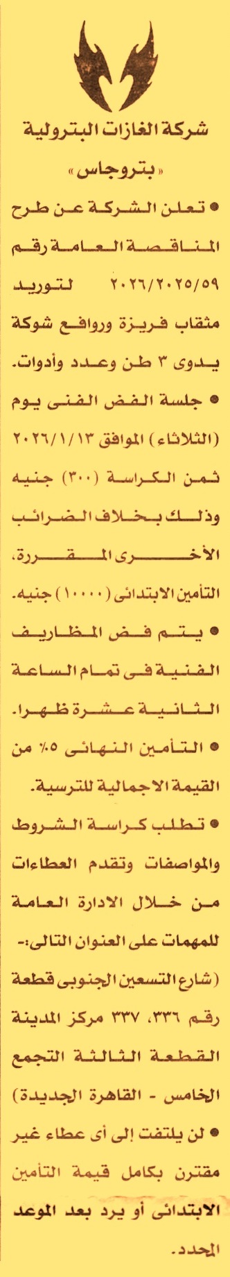 HOT Information منافصة عامة رقم 59/2025/2026 لعملية توريد مثقاب فريزة وروافع شوكة يدوي 3 طن وعدد وأدوات عن جريدة الأخبار Post navigation محافظة المنيا مركز بحوث الصحراء