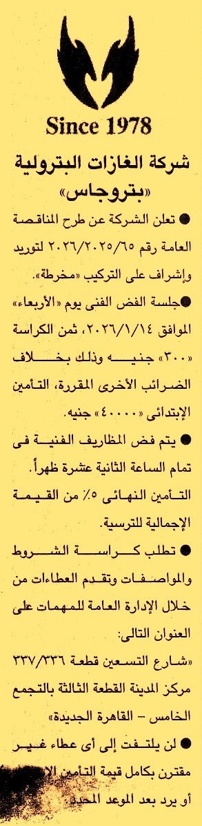 HOT Information منافصة عامة رقم 65/2025/2026 لعملية توريد وإشراف على التركيب “مخرطة” عن جريدة الجمهورية Post navigation جامعة الغردقة هيئة الأوقاف المصرية