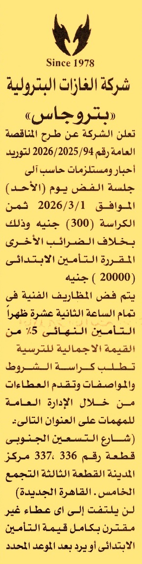 منافصة عامة رقم 94/2025/2026 لعملية