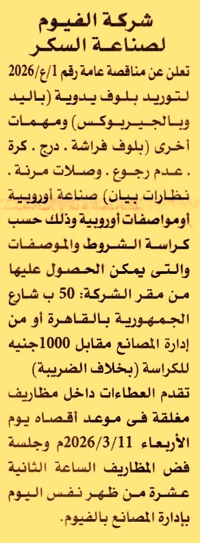 توريد بلوف يدوية “باليد وبالجيربوكس” ومهمات أخرى “بلوف فراىشة, درج, كرة, عدم رجوع, وصلات مرنة, نظارات بيان” صناعة أوروبية أو مواصفات أوروبية