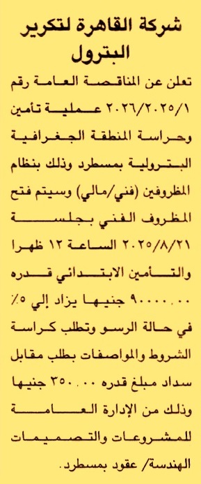 تنفيذ أعمال تأمين وحراسة المنطقة الجغرافية البترولية بمسطرد