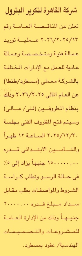 مناقصة عامة رقم 13/2025/2026 لعملية