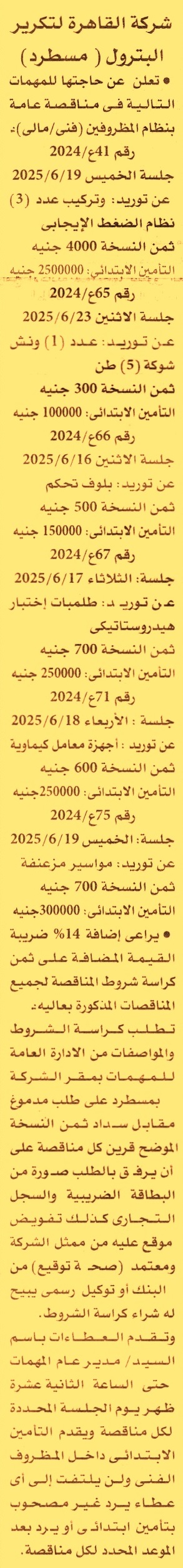 HOT Information مناقصة عامة رقم 41ع/2024 لعملية توريد وتركيب عدد 3 نظام الضغط الإيجابي عن جريدة الأهرام Post navigation شركة مياه الشرب والصرف الصحي بقنا شركة مطاحن مصر الوسطى