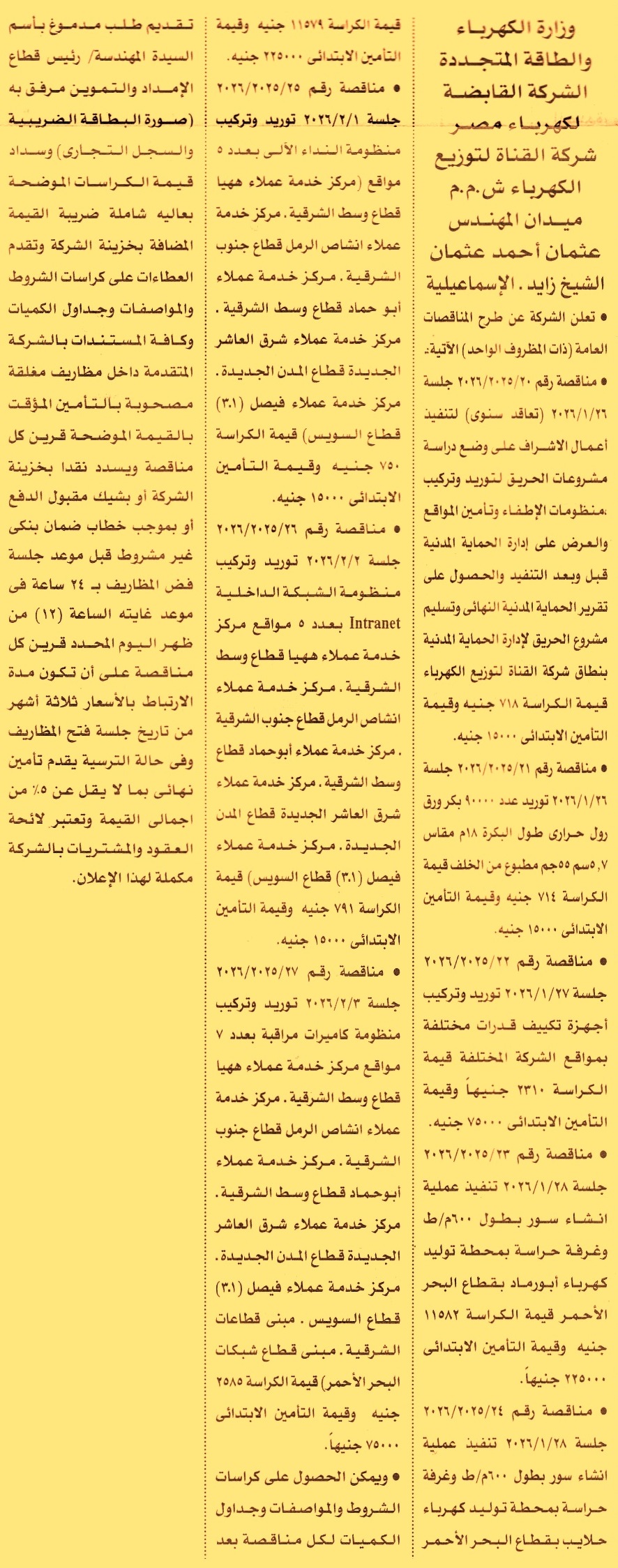 مناقصة عامة رقم 20/2025/2026 لعملية