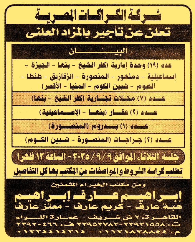 HOT Information مزايدة علنية لعملية تأجير عدد 7 محلات تجارية بكفر الشيخ وبنها وعدد 1 بدروم بالمنصورة وعدد 2 جراجات بالمنصورة وشبين الكوم عن جريدة الأهرام Post navigation بنك القاهرة الغرفة التجارية بالسويس