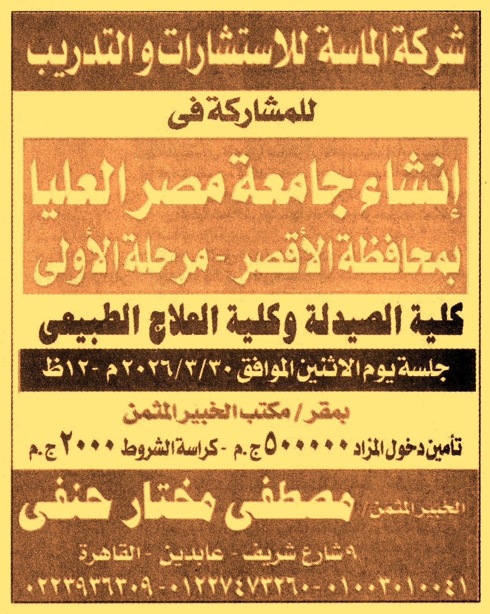 المشاركة في إنشاء جامعة مصر العليا بمحافظة الأقصر – المرحلة الأولى