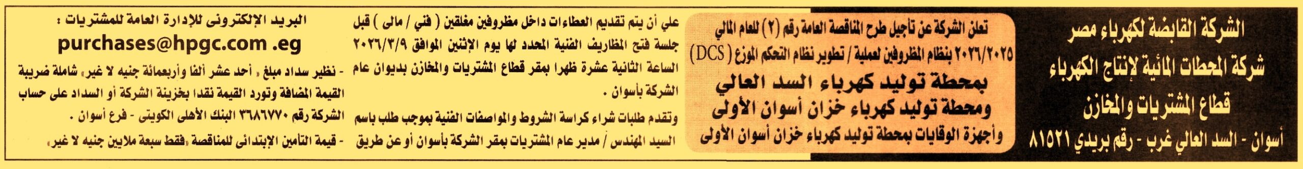 للمناقصة العامة رقم 2/2025/2026 لعملية