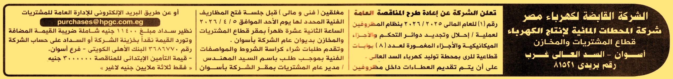 إعادة مناقصة عامة رقم 1/2025/2026 لعملية