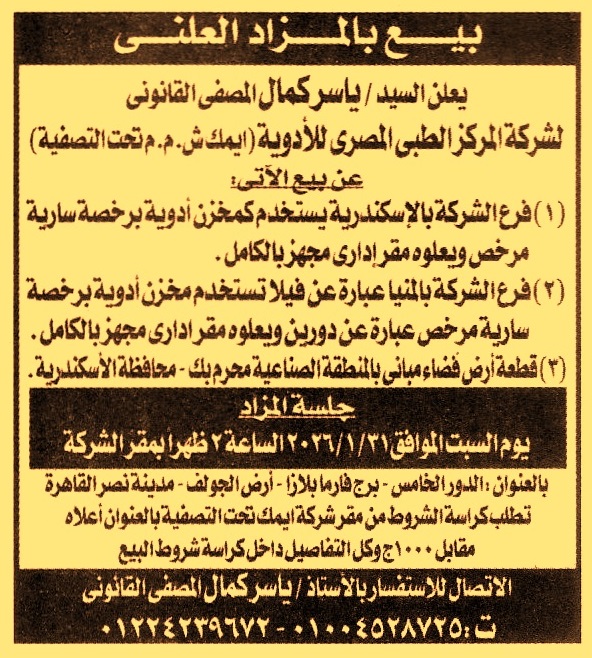 (1) فرع الشركة بالإسكندرية يستخدم كمخزن أدوية برخصة سارية مرخص ويعلوه مقر إداري مجهز بالكامل