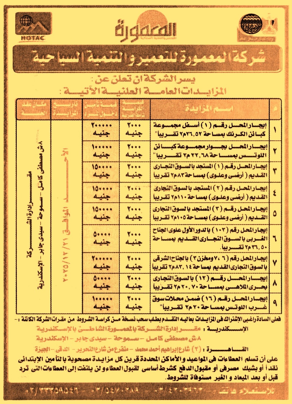 تأجير المحل رقم 1 بمساحة 26.52م2 تقريبا أسفل مجموعة كبائن الكرنك