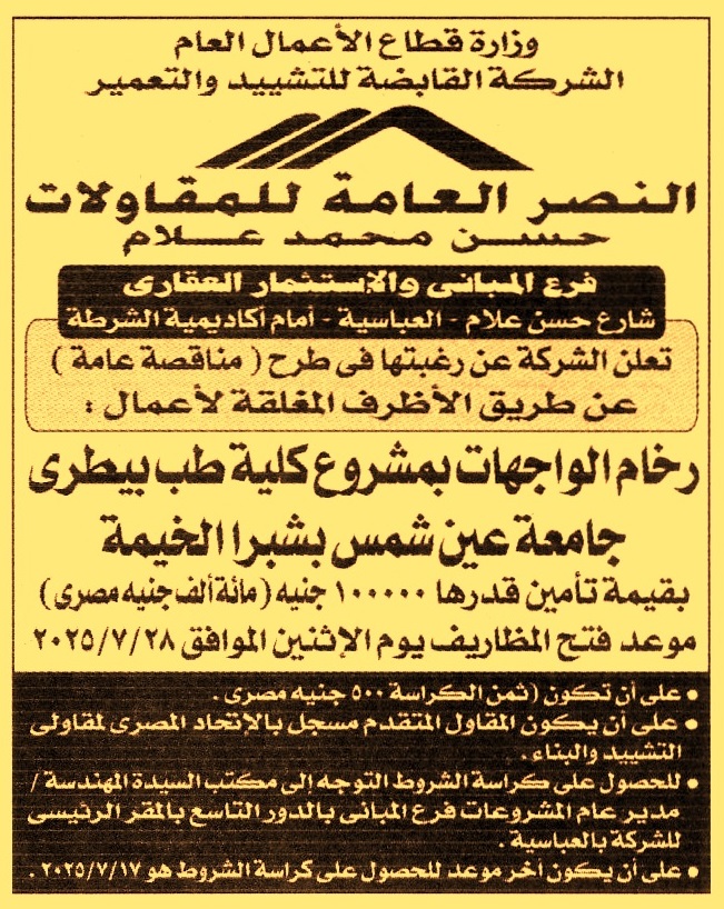 تنفيذ رخام الواجهات بمشروع كلية طب بيطري بجامعة عين شمس بشبرا الخيمة