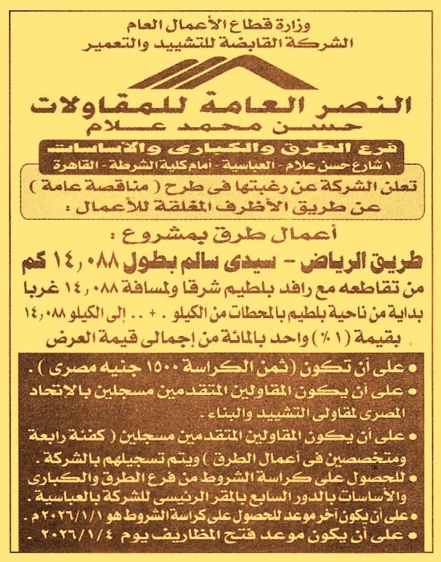 تباع الكراسة في موعد أقصاه يوم 1/1/2026)
