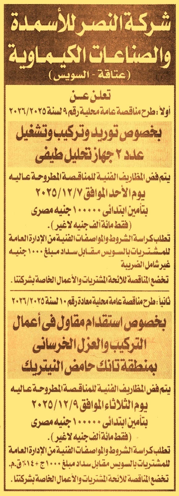 استقدام مقاول في أعمال التركيب والعزل الخرساني بمنطقة تانك حامض النيتريك