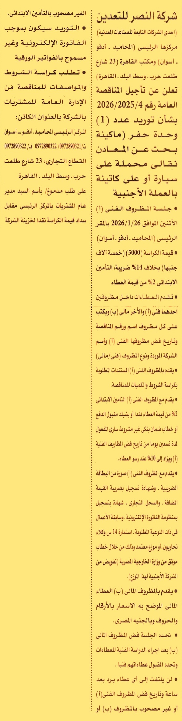 للمناقصة العامة رقم 4/2025/2026 لعملية