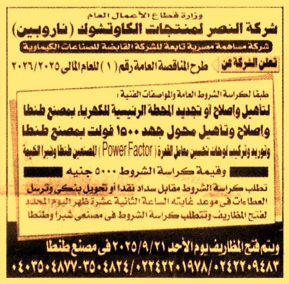تأهيل وإصلاح وتجديد المحطة الرئيسية للكهرباء مصنع طنطا