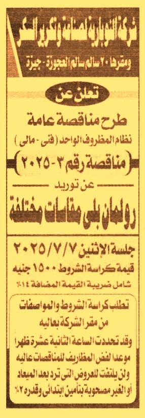 HOT Information مناقصة عامة رقم 3/2025 لعملية توريد رولمان بلي مقاسات مختلفة عن جريدة الجمهورية Post navigation مركز شباب أبو صوير المحطة بالإسماعيلية نادي الترسانة الرياضي