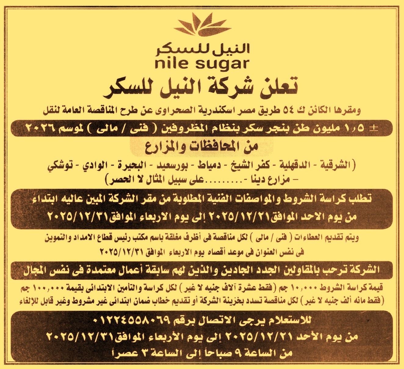 “الشرقية, الدقهلية, كفر الشيخ, دمياط, بورسعيد, البحيرة, الوادي, توشكى, مزارع دينا ..” على سبيل المثال لا الحصر