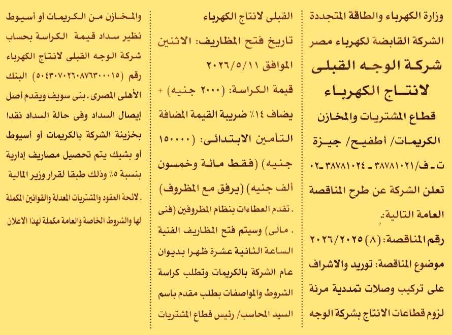 مناقصة عامة رقم 8/2025/2026 لعملية