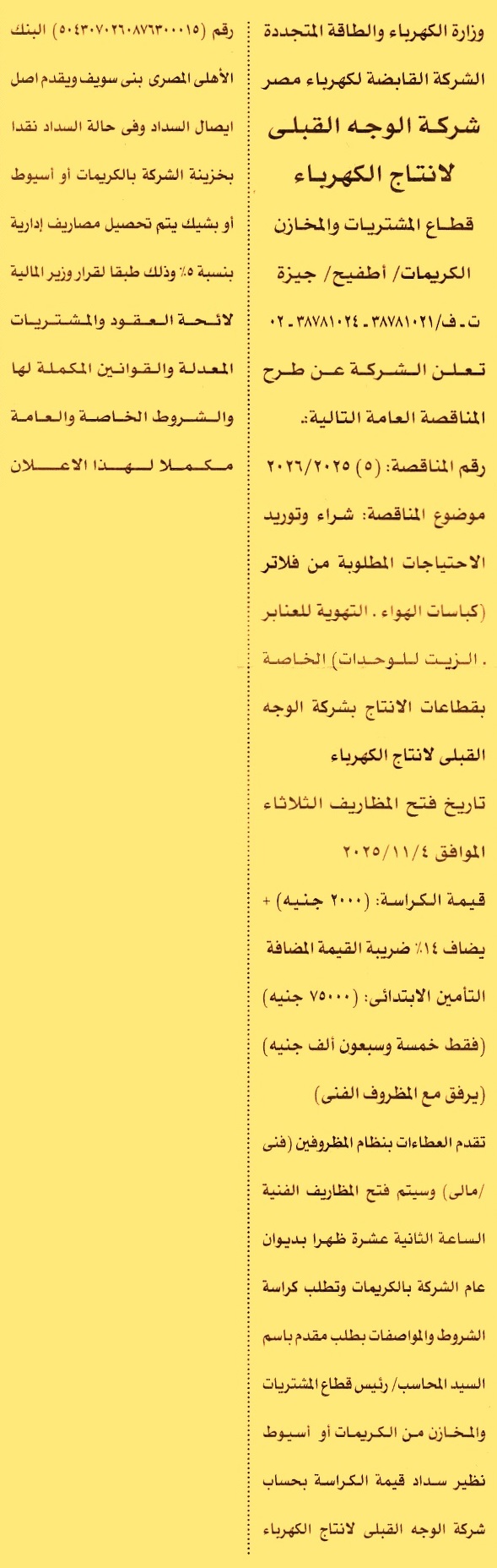 مناقصة عامة رقم 5/2025/2026 لعملية