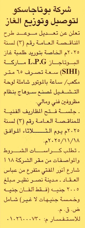 للمناقصة العامة رقم 3/2025 لعملية