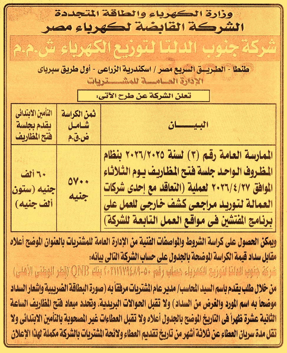 (مدة سريان العطاءات 3 أشهر)