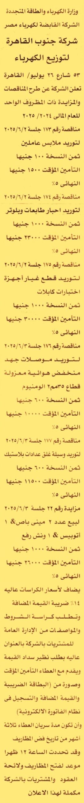 HOT Information مناقصة عامة رقم 173/2024/2025 لعملية توريد ملابس عاملين (مدة سريان العطاءات 3 أشهر) عن جريدة الأهرام Post navigation مؤسسة بلان إنترناشيونال مصر المعمل المركزي لتحليل متبقيات المبيدات والعناصر الثقيلة في الأغذية