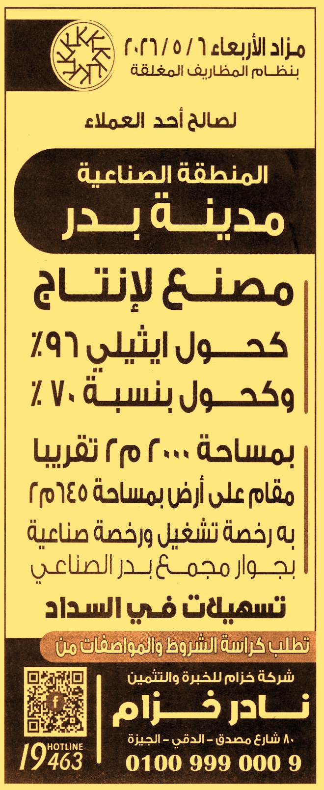 بيع مصنع لإنتاج كحول ايثيلي 96% وكحول بنسبة 70%