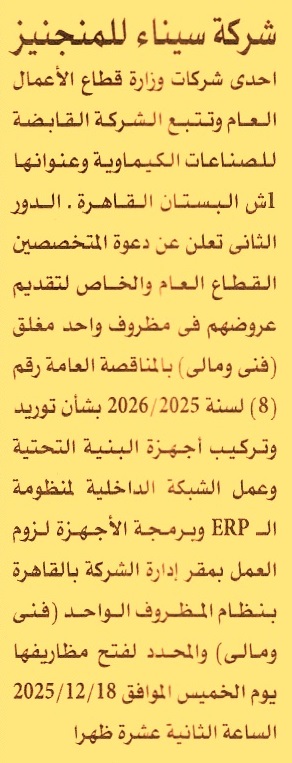 توريد وتركيب أجهزة البنية التحتية وعمل الشبكة الداخلية لمنظومة الـ ERP