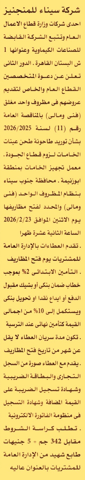 مناقصة عامة رقم 11/2025/2026 لعملية
