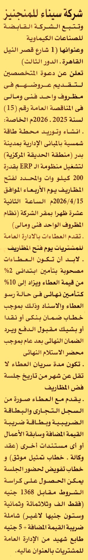 مناقصة عامة رقم 15/2025/2026 لعملية