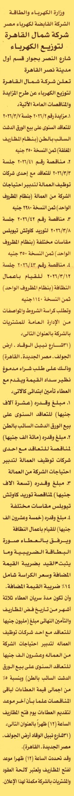 مناقصة عامة رقم 41/2026 لعملية