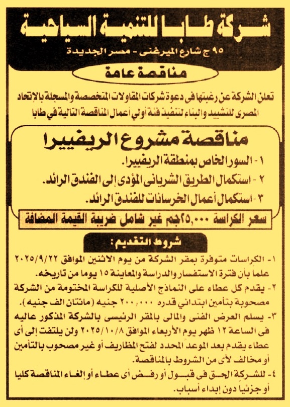 (فئة التصنيف الأولى وتباع الكراسة من يوم 22/9/2025