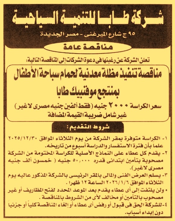وللشركة الحق في قبول أو رفض أي عطاء أو إلغاء المناقصة بدون إبداء الأسباب)