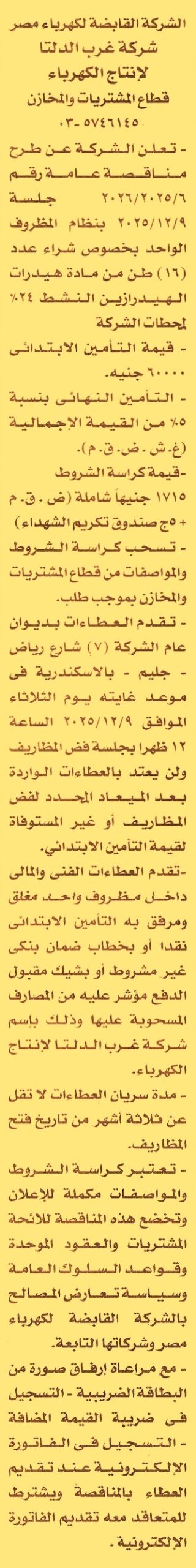 مناقصة عامة رقم 6/2025/2026 لعملية