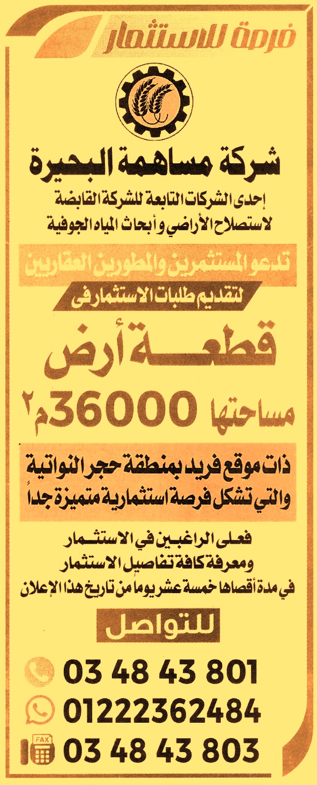 الإستثمار في قطعة أرض بمساحة 36000م2