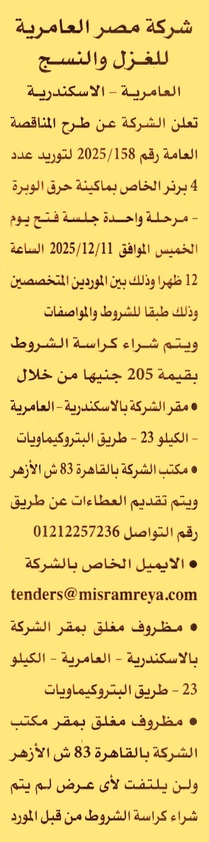 مناقصة عامة رقم 158/2025 لعملية