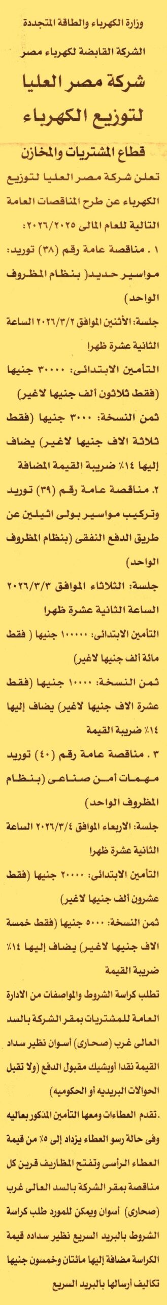 HOT information مناقصة عامة رقم 38/2025/2026 لعملية توريد مواسير حديد عن جريدة الأهرام Post navigation جمعية عطاء بلا حدود لتنمية المجتمع بمحافظة أسيوط رئاسة حي ثان طنطا