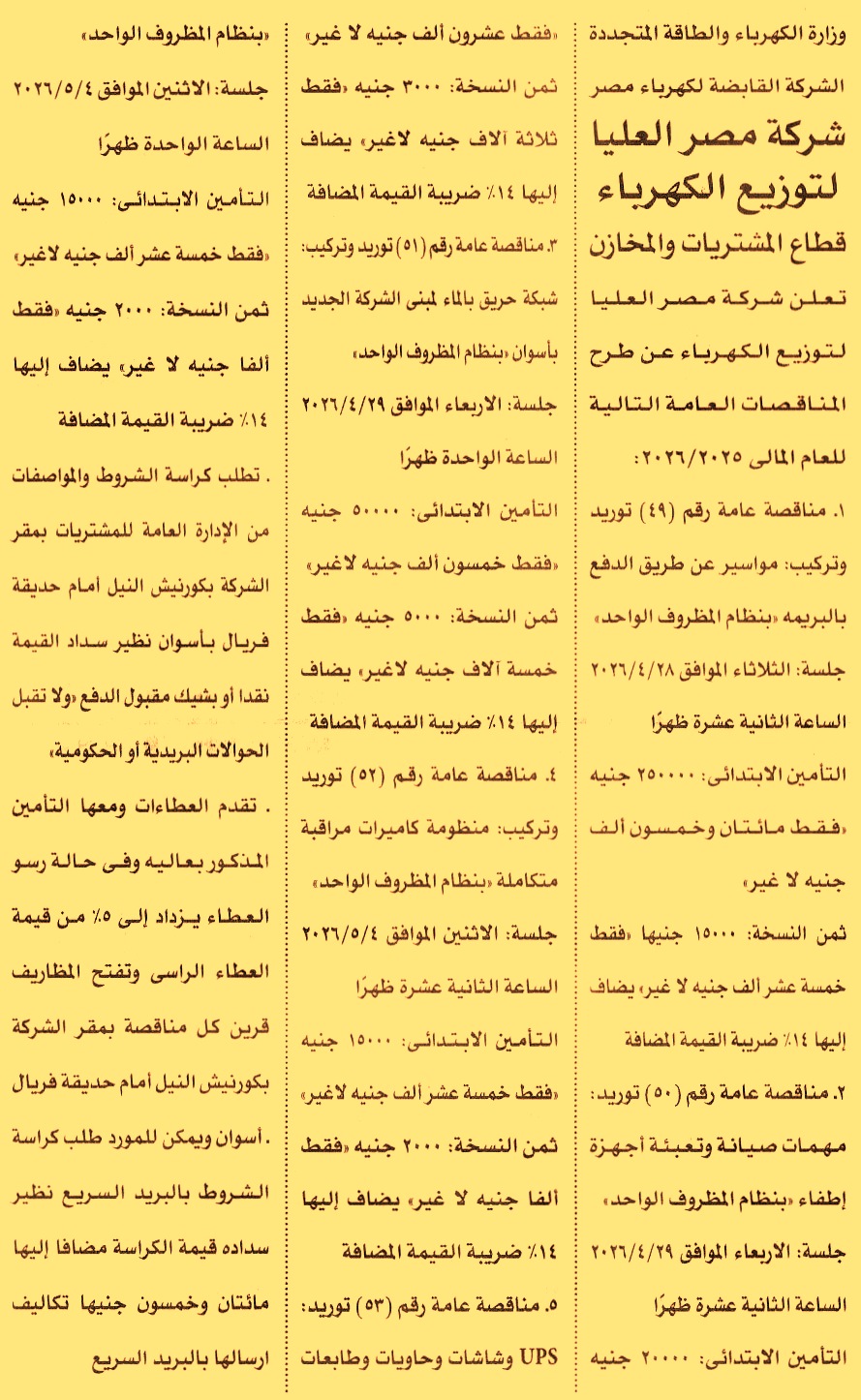 HOT Information مناقصة عامة رقم 49/2025/2026 لعملية توريد وتركيب مواسير عن طريق الدفع بالبريمه عن جريدة الأهرام Post navigation جمعية التضامن الإسلامي بحلوان محافظة سوهاج