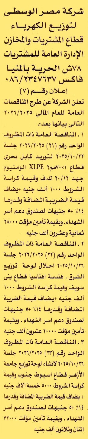 مناقصة عامة رقم 21/2025/2026 لعملية