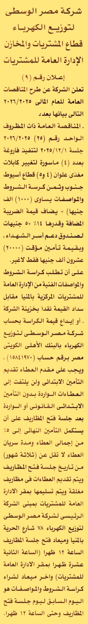 مناقصة عامة رقم 25/2025/2026 لعملية