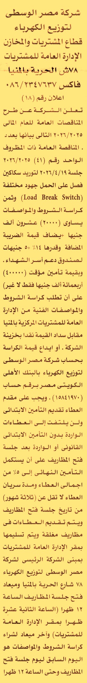 مناقصة عامة رقم 41/2025/2026 لعملية