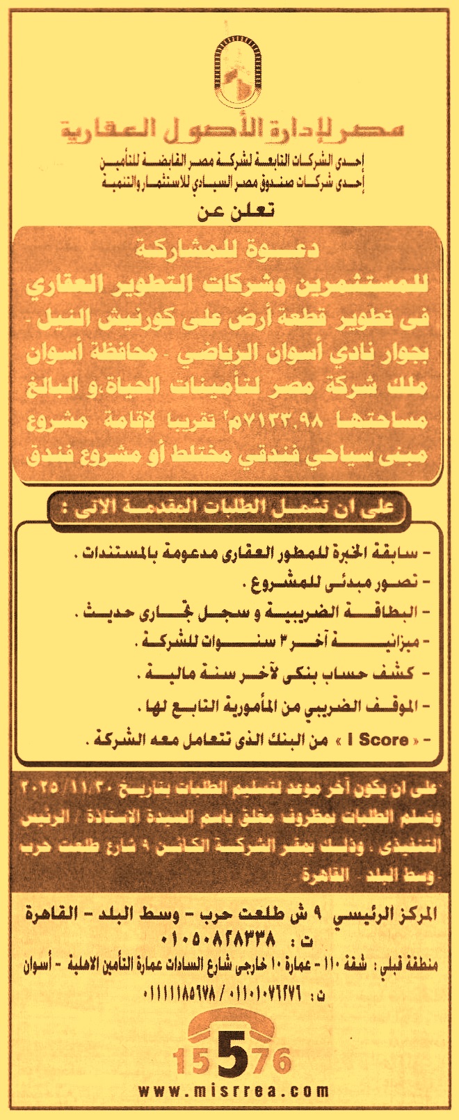 المشاركة في تطوير قطعة أرض بمساحة 7133.98م2 تقريبا