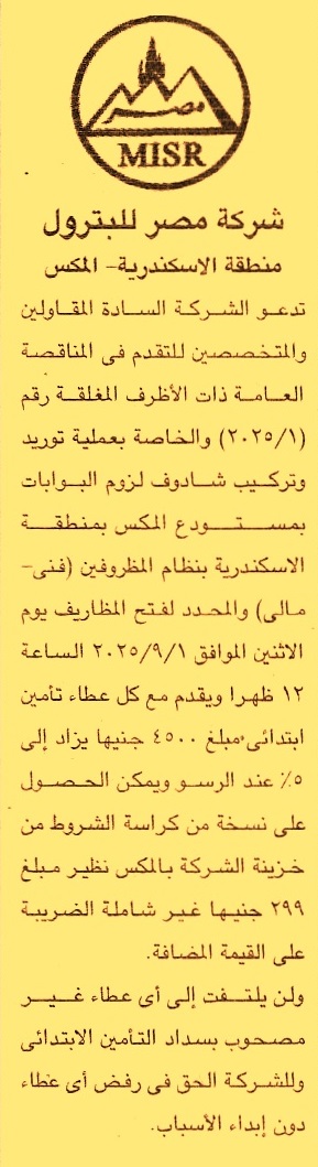 HOT Information مناقصة عامة رقم 1/2025 لعملية توريد وتركيب شادوف لزوم البوابات بمستودع المكس بمنطقة الإسكندرية (للشركة الحق في رفض أي عطاء بدون إبداء الأسباب) عن جريدة الجمهورية Post navigation محافظة البحر الأحمر رئاسة حي الأزبكية